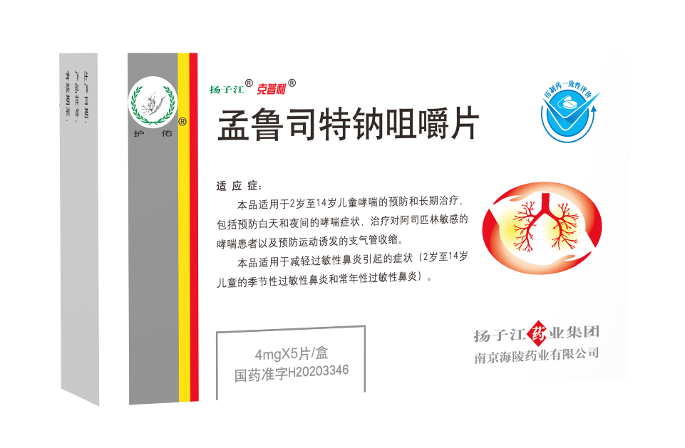 【適應(yīng)癥】1.2歲至14歲兒童哮喘的預(yù)防和長(zhǎng)期治療,包括預(yù)防白天和夜間的哮喘癥狀,治療對(duì)阿司匹林敏感的哮喘患者及預(yù)防運(yùn)動(dòng)誘發(fā)的支氣管收縮。2.減輕過(guò)敏性鼻炎引起的癥狀(2歲至14歲兒童的季節(jié)性過(guò)敏性鼻炎和常年性