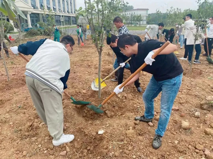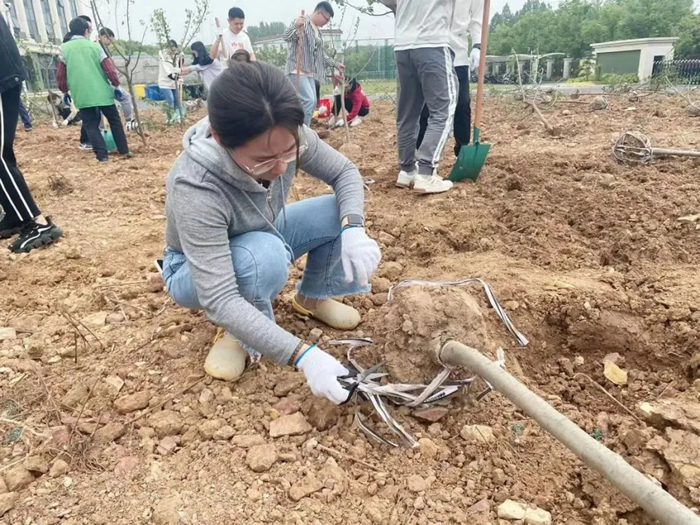 除土球布條、挖坑、扶樹(shù)、填土、檢查調(diào)整......紙上得來(lái)終覺(jué)淺,覺(jué)知此事要躬行??油诘没蛱罨蛱珳\,埋樹(shù)根時(shí)或太松或太實(shí),凡此種種細(xì)節(jié),都會(huì)影響樹(shù)苗成活率,大家也虛心聽(tīng)從綠化師傅們的意見(jiàn),耐心調(diào)整,并很快得心應(yīng)手起來(lái)。