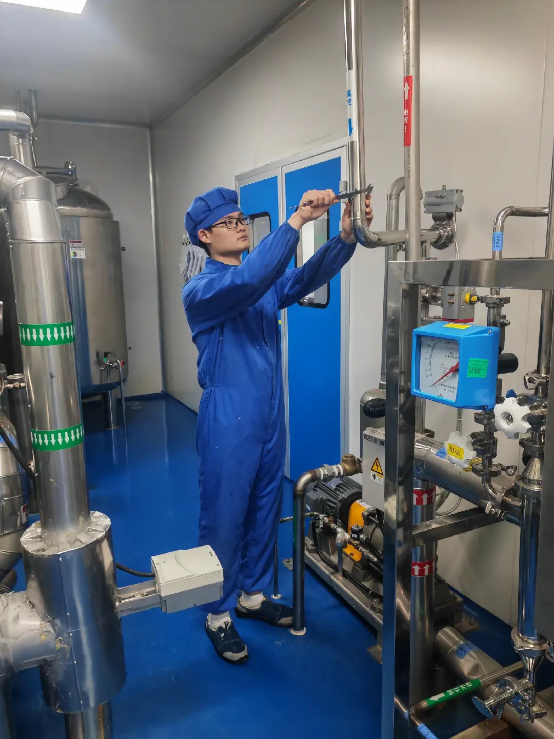 2022年6月,懷揣著“通過設(shè)備技術(shù)創(chuàng)新改進(jìn),提高車間產(chǎn)品的質(zhì)量和生產(chǎn)速度”的夢想,他申請從配方轉(zhuǎn)崗至設(shè)備工程師。轉(zhuǎn)崗之初,接到報修后他不敢一個人去現(xiàn)場,必須拉上老師傅陪同。因此崗位上傳出了“柯定華他不會修,和我們一樣站在旁邊看,不知道他非要去機(jī)修干嘛”的聲音??露ㄈA深知“踏石留印、抓鐵有痕”的道理,從力所能及的事情開始干,換輪子、換門鎖、換開關(guān)、打膠、拆一根線接一根線的換傳感器、照葫蘆畫瓢式的換備件……夢想從學(xué)習(xí)開始,事業(yè)靠本領(lǐng)成就。漸漸地,柯定華讓車間看見,他已經(jīng)從“雜工”成長為了配方設(shè)備維修的“行家”。流化床原先棄用的真空吸料管道內(nèi)壁無法徹底清潔,柯定華通過技改將對穿螺絲法蘭改為快裝盲板,使得清場時可將盲板取下深度清潔到管道內(nèi)壁,避免藥粉藏于死角產(chǎn)生交叉污染的風(fēng)險;原先流化床充氣密封圈頻繁漏氣,他通過技改更換螺紋式氣管接頭為快插式氣管接頭,并培訓(xùn)崗位人員,使得密封圈破損頻率大大降低,減少了生產(chǎn)過程中由于密封圈破損造成物料暴露于空氣中受污染的風(fēng)險等等。根深才能葉茂,本固方可枝榮。GLATT制粒線如今煥然一新,精神抖擻,發(fā)生故障頻率遠(yuǎn)低于從前。
