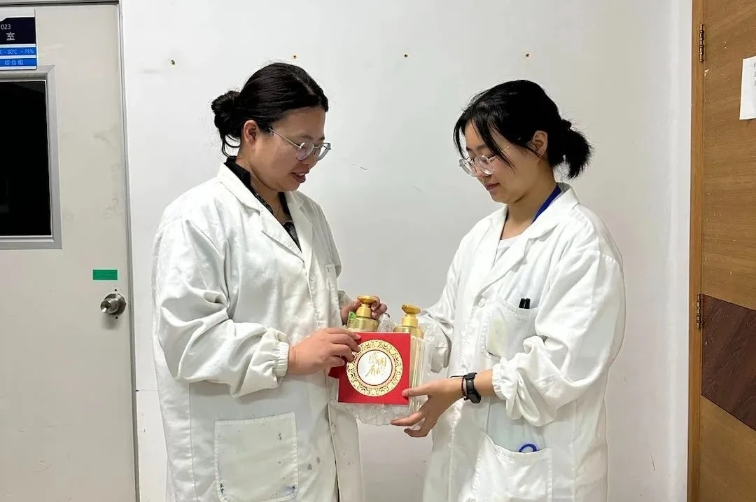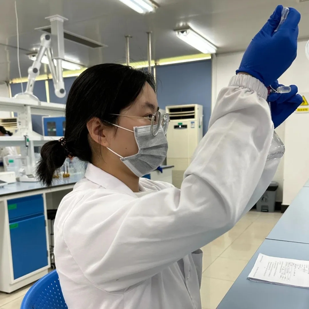 面對(duì)每一項(xiàng)任務(wù),她都敢于挑戰(zhàn)、不畏困難。在成品組的檢測(cè)項(xiàng)目中,她發(fā)現(xiàn)對(duì)照品物質(zhì)在室溫下易融化導(dǎo)致稱稱樣結(jié)果不準(zhǔn)確的問(wèn)題,經(jīng)過(guò)幾次檢測(cè)該產(chǎn)品后,她積極思考如何有效控溫并提高稱量速度。經(jīng)過(guò)一番思索,她嘗試使用過(guò)濾膜塑料盒加水制作簡(jiǎn)易“冷凍倉(cāng)”,在稱量過(guò)程中幫助產(chǎn)品有效保溫,保證對(duì)照品處于冷凍狀態(tài)。在經(jīng)過(guò)多次使用后,發(fā)現(xiàn)該方式對(duì)稱量對(duì)照品速度有顯著提升,同時(shí)減少了對(duì)照品使用成本。