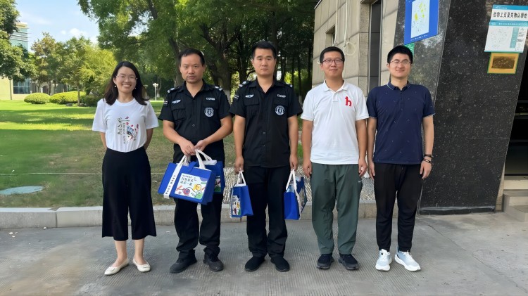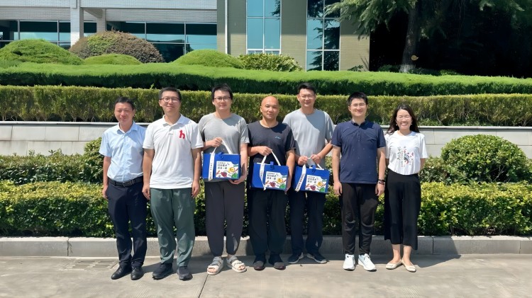 南京海陵黨支部書記李靜、黨支部副書記車越、財務部部長郭垂來代表工廠慰問奮戰(zhàn)在一線的員工,為他們送上防暑禮包。