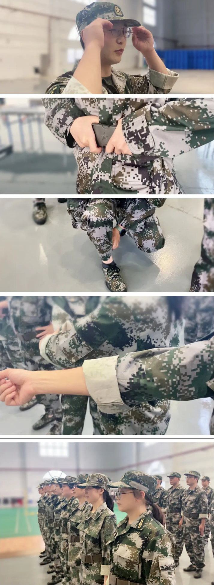 軍訓(xùn)服是軍訓(xùn)嚴肅性和標準化的標志,也是團隊凝聚力的象征。在訓(xùn)練之前,教官為所有參訓(xùn)干部規(guī)范了全套隊服的著裝要求:軍帽、肩章、衣領(lǐng)、衣扣、腰帶、袖口、衣擺、褲子、褲腳、鞋子,不懼細節(jié),凡事徹底。