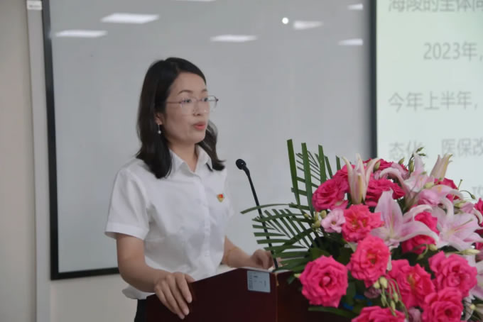 海陵黨支部書記、海陵工廠廠長助理李靜做出了以《以學鑄魂,終身成長,爭做標桿,在揚子江新征程上跑出海陵風采》為題的海陵藥業(yè)2023年中工作報告。報告總結(jié)了海陵人2023上半年開拓創(chuàng)新的成果,更為海陵明確了下半年的工作方向。