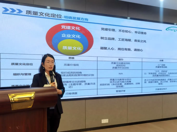 c)質(zhì)量文化推進:李總介紹了海陵企業(yè)文化建設(shè)過程,以2005年GMP體系認(rèn)證、2012年固體制劑1號車間通過EUGMP認(rèn)證、2019-2021年完成3個品種現(xiàn)場一致性評價、海陵十四五價值主張確認(rèn)講述海陵四個階段文化推進的轉(zhuǎn)變。而“質(zhì)惠榜樣”,“工匠海陵”更是薪火相傳的象征。