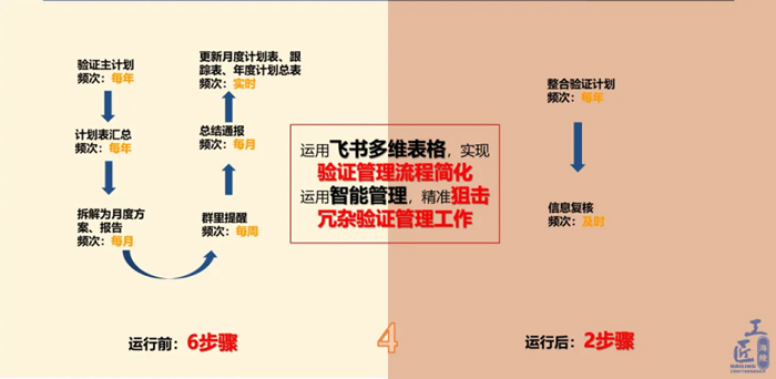 陳杰也將優(yōu)化的經(jīng)驗(yàn)進(jìn)行分享,推廣至驗(yàn)證例會(huì)行動(dòng)項(xiàng)跟蹤、驗(yàn)證輸出行動(dòng)項(xiàng)跟蹤等,將冗雜的管理流程交給智能化算法,將人的能力聚焦到真正能發(fā)揮其價(jià)值的地方。