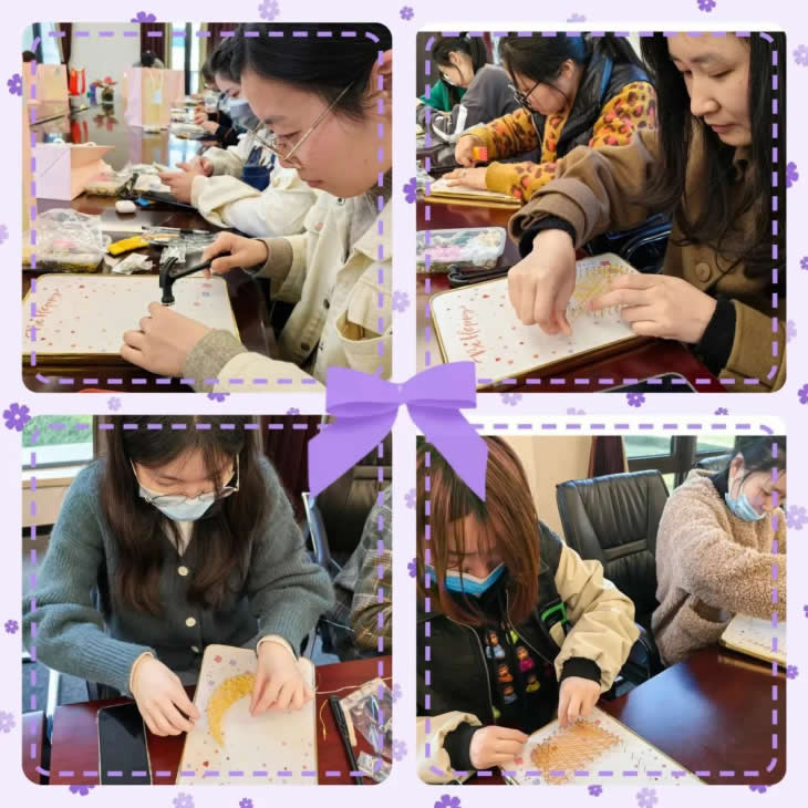 三月芳菲,灼灼韶華,在這個(gè)草木蔓發(fā),春山可望的美好時(shí)節(jié),“三八”國(guó)際勞動(dòng)?jì)D女節(jié)如期而至。值此專(zhuān)屬節(jié)日里,3月7日下午由工會(huì)牽頭,海陵質(zhì)量管理部和人力資源部承辦的“女神節(jié)”特別活動(dòng)在行政樓一樓大會(huì)議室精彩呈現(xiàn)。平日里柔肩扛重任的姑娘們,退去工服相聚在此,在QA王偉和閆紫薇的帶領(lǐng)下體驗(yàn)了一次手工弦絲畫(huà)的制作。