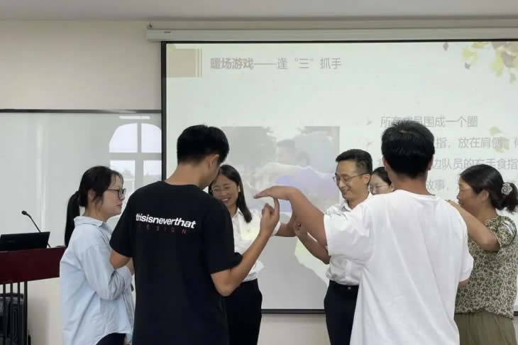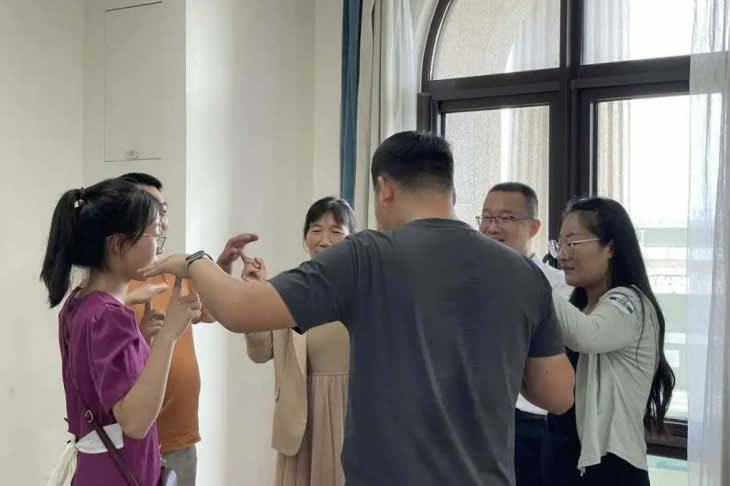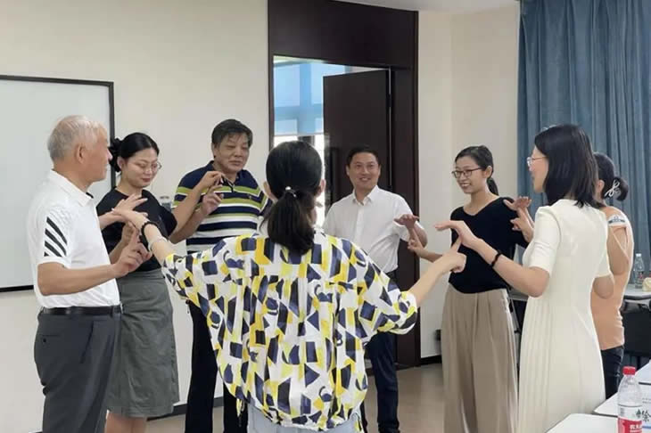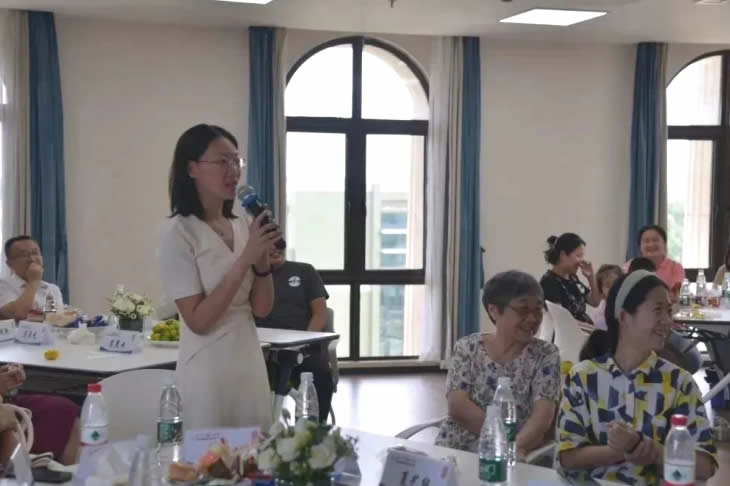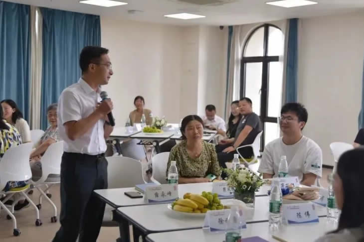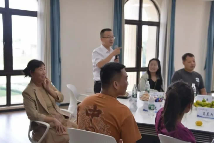 結(jié)束參觀后,家屬們跟隨工匠走入座談會現(xiàn)場,傾聽主持人介紹海陵藥業(yè)的企業(yè)文化。座談會開始,大家在“抓手指”游戲中打破拘謹(jǐn)、放松心情,歡聲笑語充盈著整個會議室。