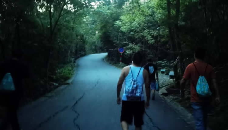 行程未半,天色漸暗,偶有光亮透過枝椏投在路上。大家步伐穩(wěn)健地穿過或明或暗的登山路,堅定地向上攀登。