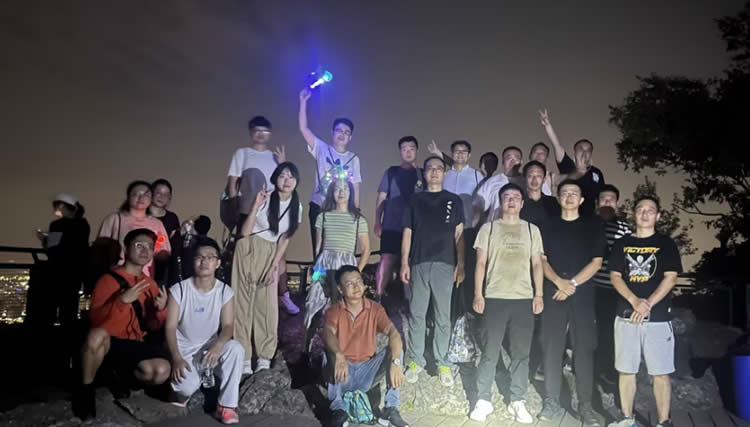 9月18日傍晚,報名參加登山的小伙伴們在公司門口領(lǐng)取物資,分成4人小隊向紫金山頂進發(fā)。5公里的路程雖頗具挑戰(zhàn),但大家仍然興致高漲、熱情滿滿,一片歡聲笑語。
