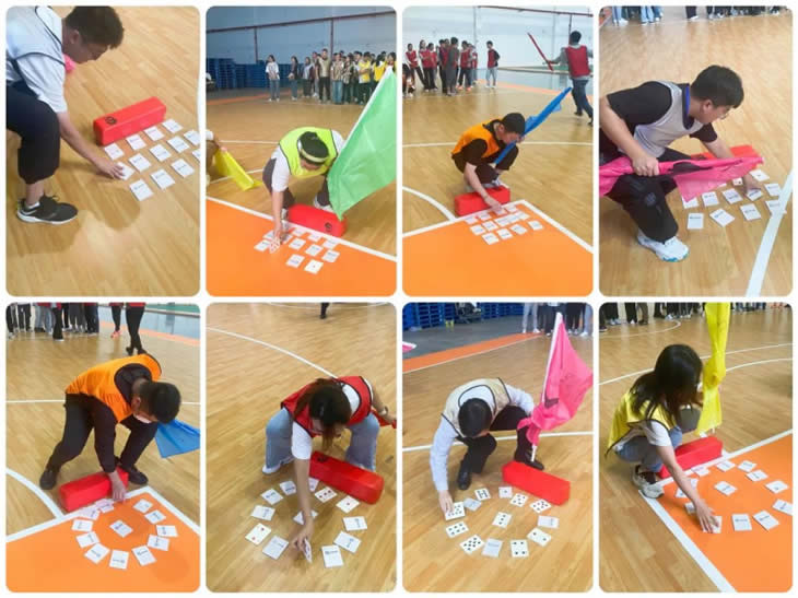 活動(dòng)正式開(kāi)始!“超音速”率先成為大家團(tuán)隊(duì)磨合的項(xiàng)目。各隊(duì)成員你來(lái)我往,奮力奔跑。起先,大家還沒(méi)領(lǐng)悟到比賽訣竅,只是想著自己以最快的速度往返翻牌。隨著賽程推進(jìn),各隊(duì)紛紛意識(shí)到溝通的重要性,紛紛形成了以記錄員為圓心的“討論組”。隨著各隊(duì)對(duì)牌面分布的逐漸明晰,比賽也進(jìn)入白熱化的“沖刺階段”,并很快角逐出排名!
