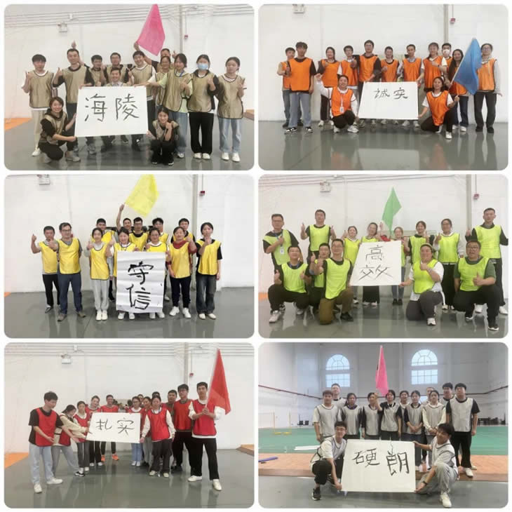 “華山論劍”要求團(tuán)隊(duì)全員共同指揮一人,彼此競(jìng)爭(zhēng)切磋。隨著戰(zhàn)況的緩和激烈,時(shí)而寂然無(wú)聲,時(shí)而人聲鼎沸。勝負(fù)只在一瞬之間,現(xiàn)場(chǎng)隨著精彩的對(duì)決而爆發(fā)出陣陣歡呼聲?!肮怖L藍(lán)圖”則要求一人指揮,全員合力達(dá)成目標(biāo)。參與的成員不由自主地屏住呼吸,生怕自己的呼吸擾亂了正在書(shū)寫(xiě)的筆尖。“海陵”“誠(chéng)實(shí)”“守信”“高效”“扎實(shí)”“硬朗”。每一個(gè)團(tuán)隊(duì)都緩慢而堅(jiān)定地寫(xiě)下了自己所選擇的詞語(yǔ)。