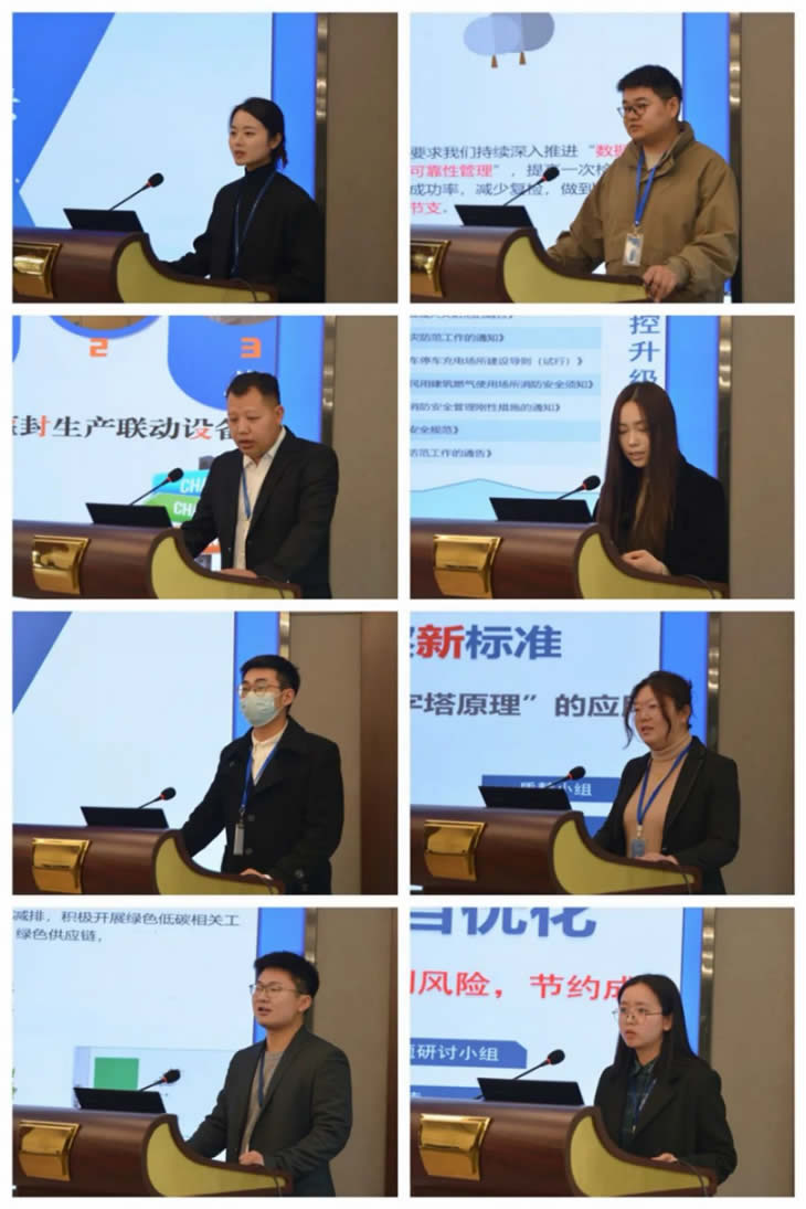 3月14日13:15,比賽正式開始。本屆大賽共有14個團隊參賽,涉及企業(yè)各業(yè)務模塊的創(chuàng)新應用?!痘赥RIZ理論建立孟魯司特鈉中殘留溶劑的新方法》,《亞硝酸鹽過濾條件優(yōu)化-提升一次性檢驗合格率》、《TOC項目優(yōu)化》三個課題重點介紹了新結構化工具在質量管理中的結合應用;《產品A包衣效果改進》、《小容量洗灌封設備精準維護與效率提升》兩個課題探討如何提高產品生產環(huán)節(jié)的質量和效率;《基于動力中心制冷系統(tǒng)節(jié)能水泵的設計與應用》、《提高工廠經(jīng)營成本競爭力》、《提升固體制劑產品排產效率》則在不同維度聚焦降能耗、控成本、提效率;《倉儲系統(tǒng)確認方法改進提升》、《如何建立潔凈服重復使用考察新標準》、《精準狙擊冗雜驗證過程》在驗證管理方面做出新探索;《基于智能物聯(lián)技術的廠區(qū)新能源車輛管理模式》、《零星工程管理模型下的供應商管理體系》、《以戰(zhàn)促訓——構建全員信息安全新紀元》實現(xiàn)了“業(yè)務+信息化”的組合創(chuàng)新,聚焦當下熱門的信息化、智能化轉型。